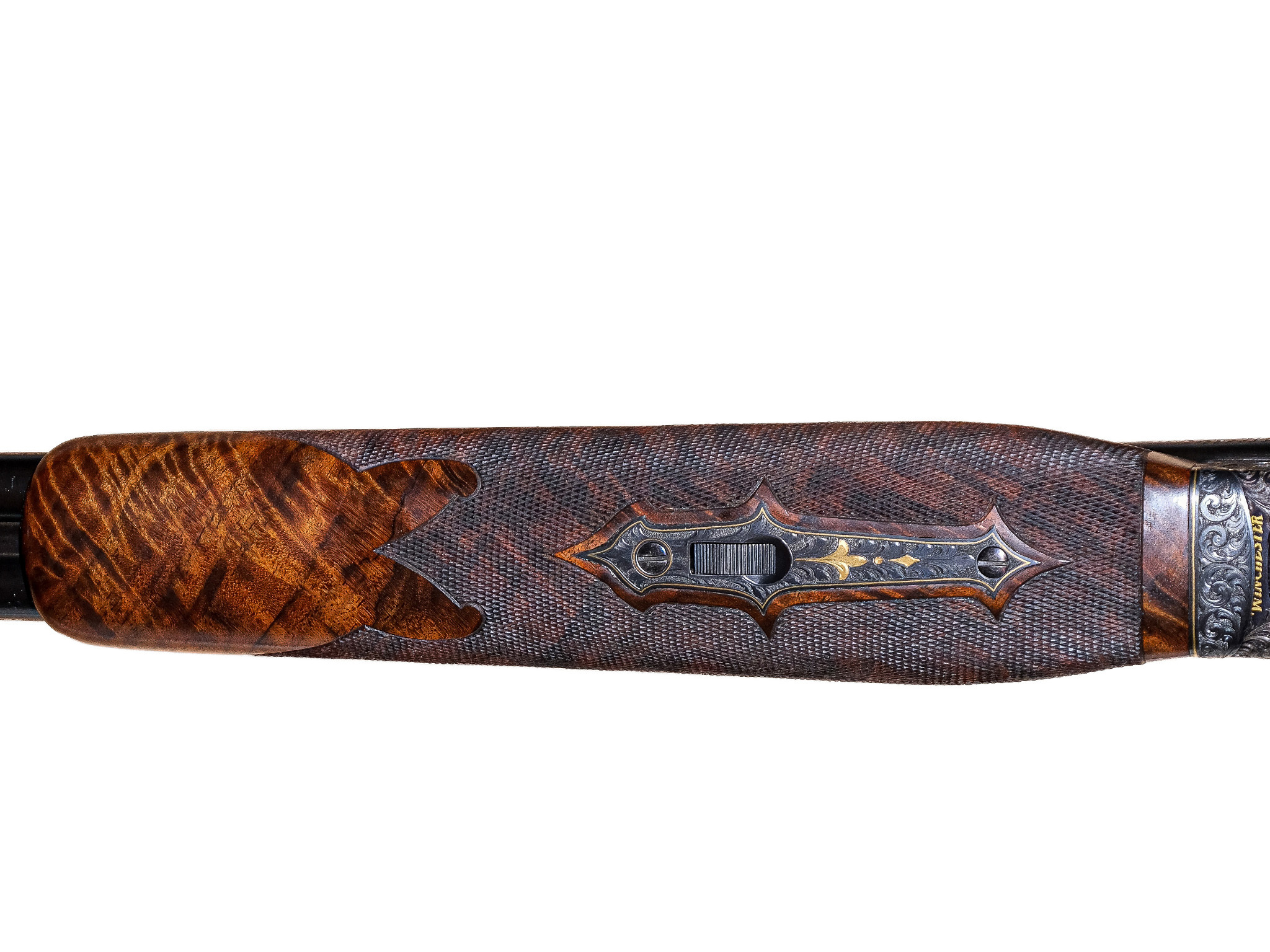 While Winchester engraved quite a few Model 21’s in various levels of engraving and gold, none of these guns could ever rival the level of opulence of these two known Grand Royal Model 21 shotguns. These guns signify the very best of the Winchester Custom Shop with the very last of the factory engravers, stockers, checkerers, and gunsmiths.